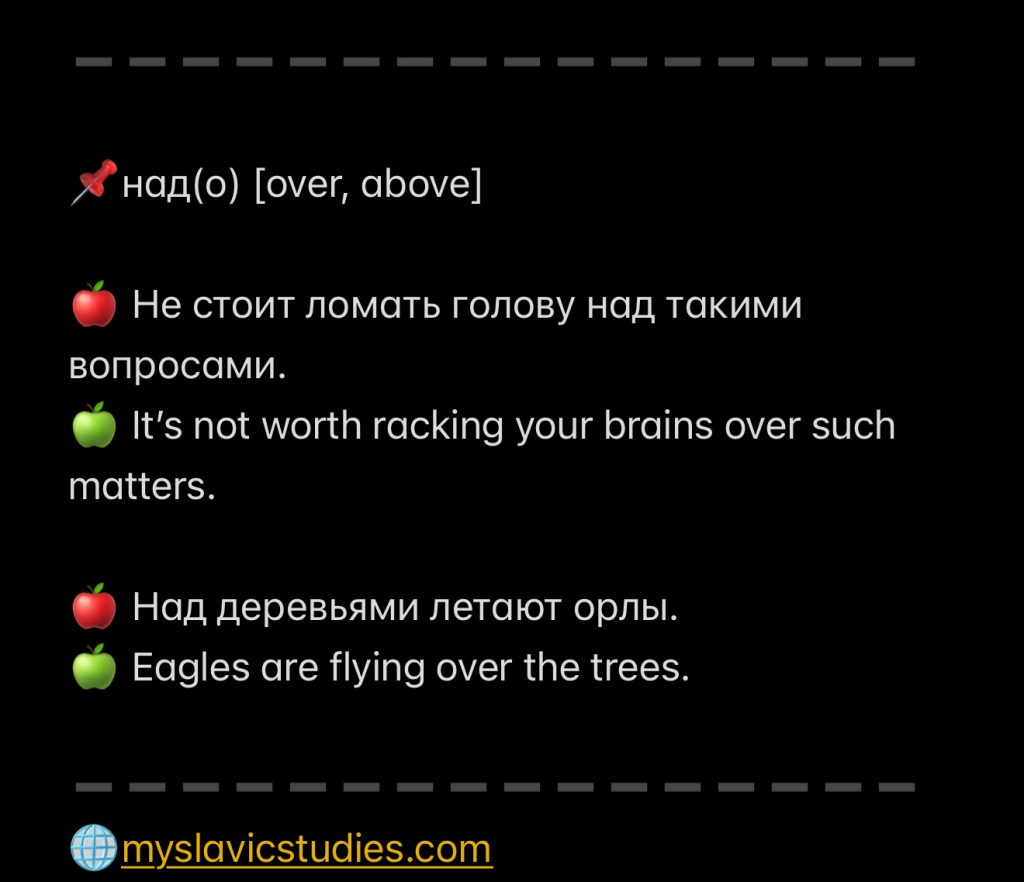And there you have it! We looked over all the prepositions used with the instrumental case. Quizzes will come soon!